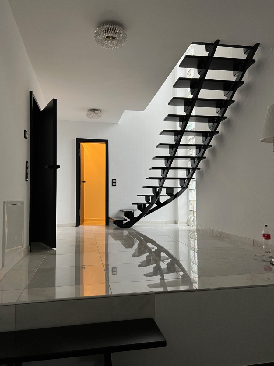 Die Stufen wurden in Eiche massiv gefertigt. Die Räucherbeize dringt hierbei tief in das Holz ein und der abriebfeste Treppenlack verschönert die Oberfläche und schützt sie...